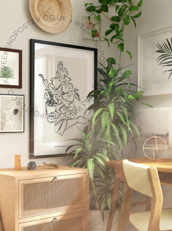 Price range: £ 8.00 through £ 50.00Woman With Plant minimal black and white poster