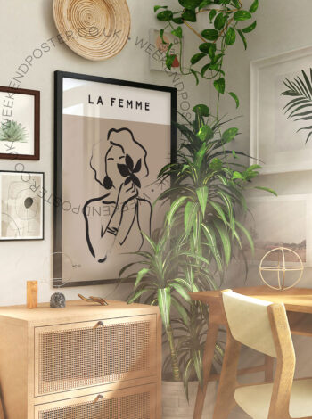 Price range: £ 8.00 through £ 50.00La Femme minimal black and white poster
